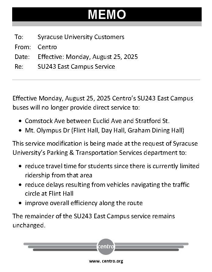 Questions may be directed to Centro's Call Center at (315) 442-3400.