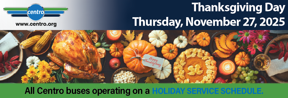 Centro's Service Alerts notify customers of detours or service delays due to inclement weather, traffic, special events, or other uncontrollable circumstances as they happen.